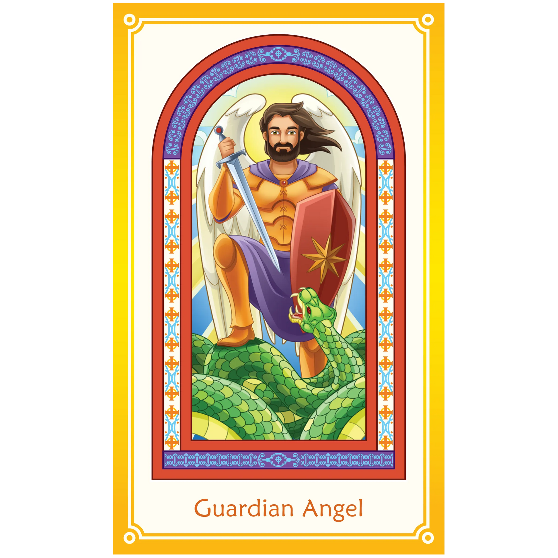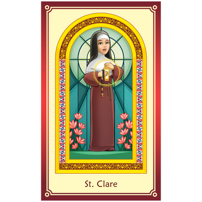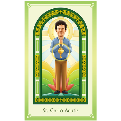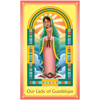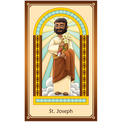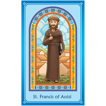 10 full-color, laminated prayer cards in a beautiful envelope. Each holy card has a prayer on the back.